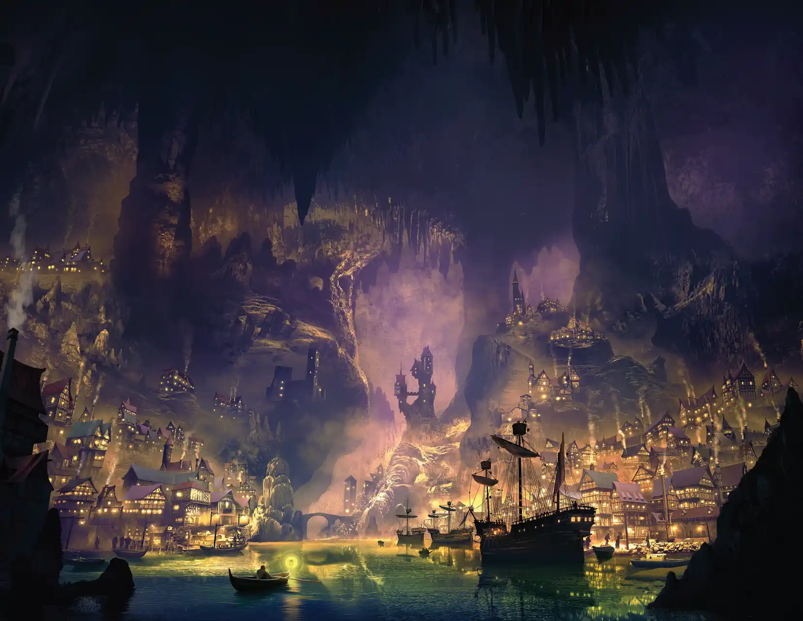 Gloomport — supported by gangs and crime syndicates that hide out in the shadowed streets and many smaller caves that line the