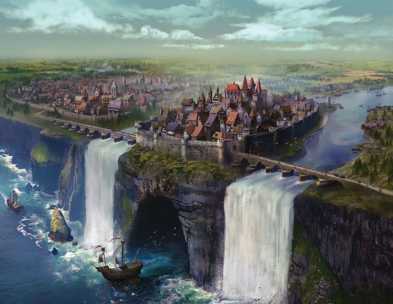 below the city and into the Gloomport cavern. Outside, the Maw is flanked by two great waterfalls that drop from the cliffs above