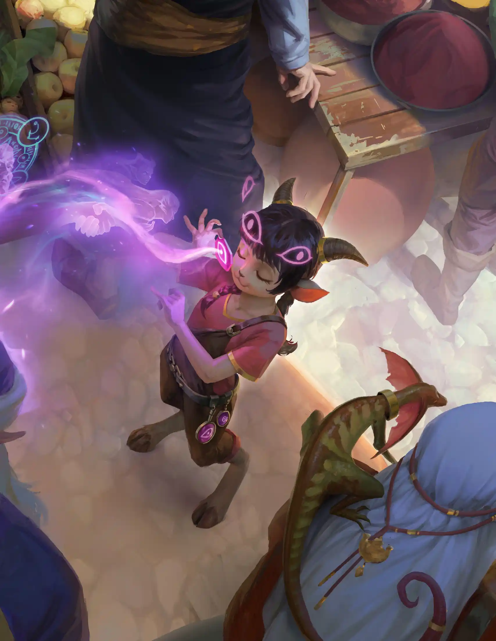 The core of how Daggerheart plays is a back-and-forth between the GM and players that feels less like a standard procedure and more like a collaborative brainstorm. The GM sets a scene, players ask questions, and the table works together to help build the scene. The GM turns this around and asks players to define things too. What does your character's hometown look like? How did you learn to move so quietly? What do you notice about this place that the others might miss?