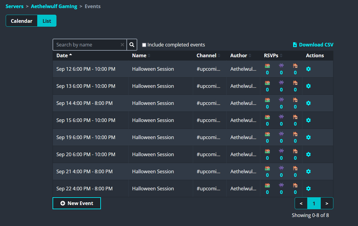 You can access the events via the Discord, or view the calendar through the below link after registering with the server. It will provide you a broader overview of when the events are occurring, and who is attending them. You must sign up using discord, though.