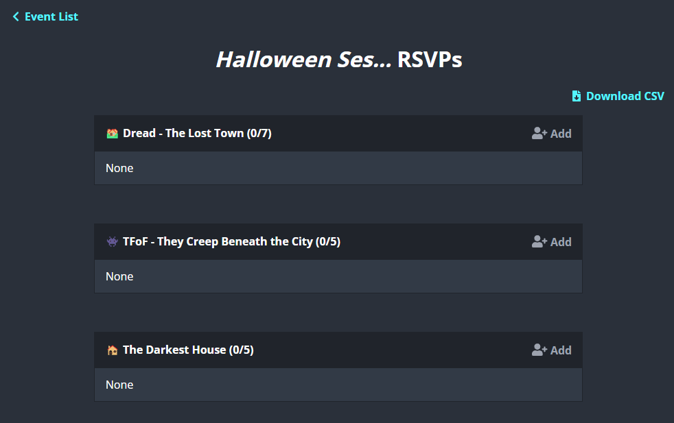 You can sign up for more than one event if you are fine playing any of them, but the first game to 3+ RSVPs will be locked in.